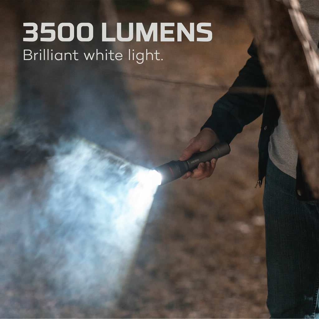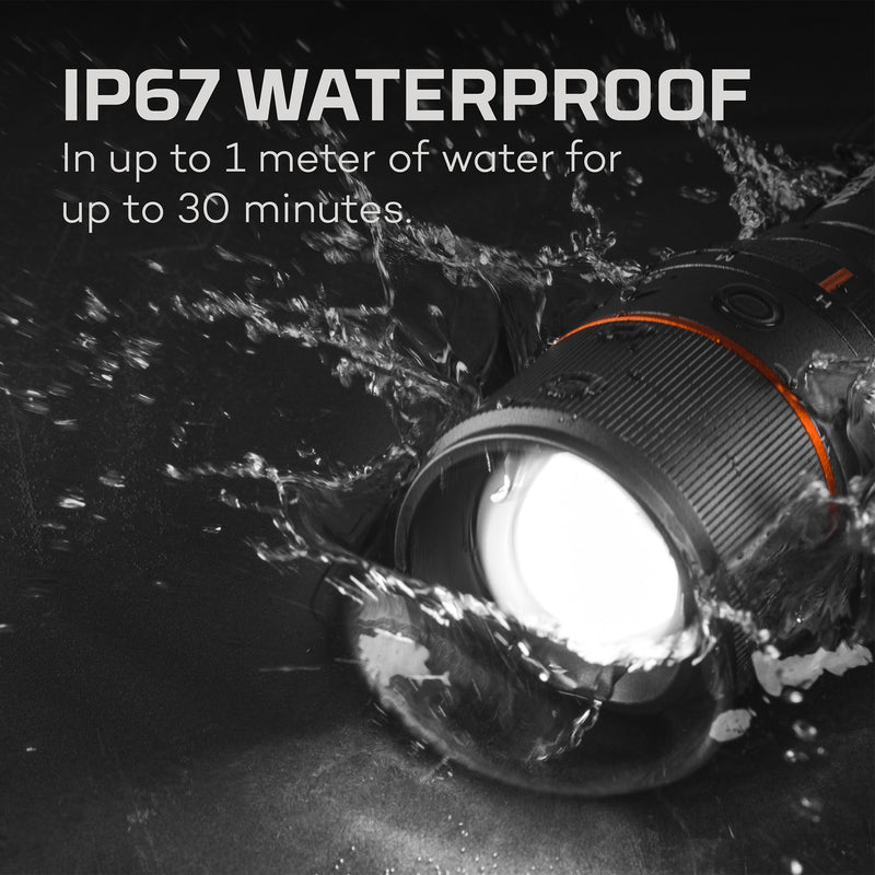 handheld flashlight with 4 light modes. The included mode selection dial makes it easy to switch between modes and the powerful LED in this flashlight can light up 131 meters. The included battery allows for up to 20 hours of operation in between charges.