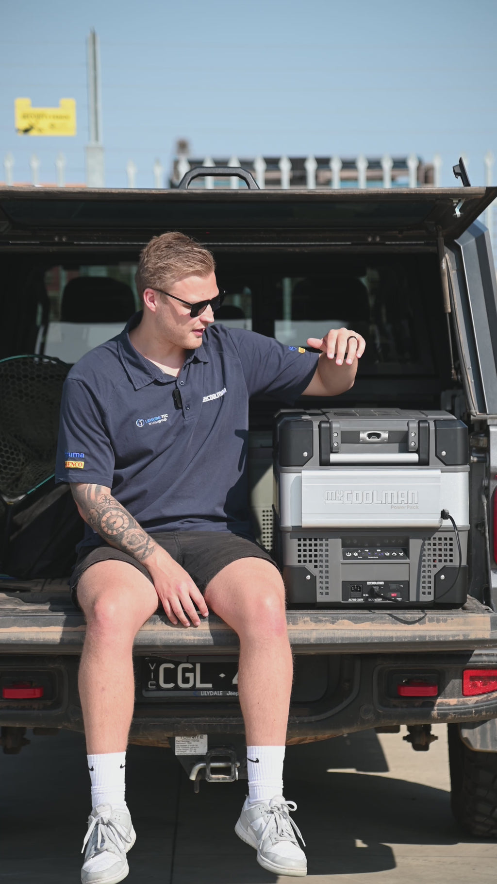 Starting with our two-way reversible lid, space-saving fold-flat carry and tie-down handle, and integrated bottle openers at each end, this fridge also showcases our patented Blue-Gen compressor which operates on 12/24V and 240V, and DC input at both ends to make it easy to plug into your car.