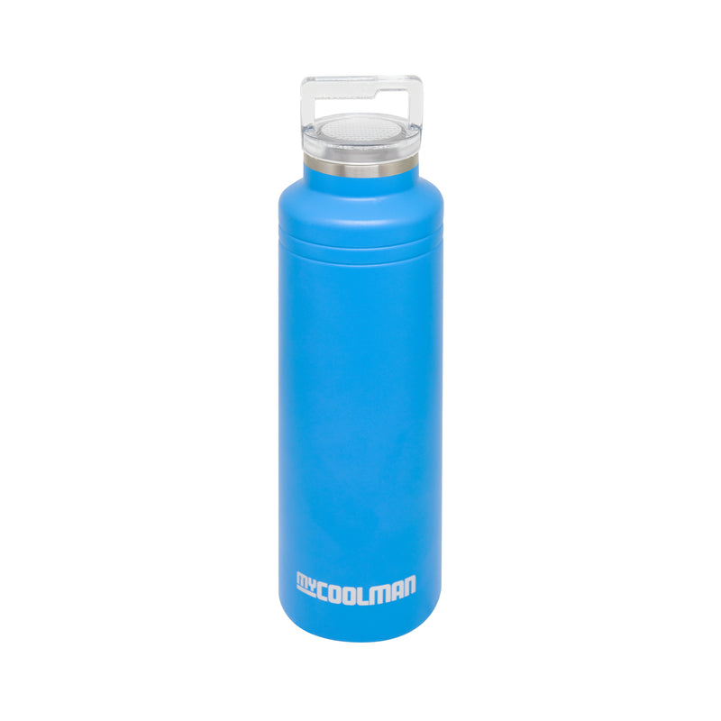 The myCOOLMAN Stainless Steel Bottle features triple-layered, vacuum-sealed construction to enhance performance. A copper-plated interior layer, 18/8 stainless steel, and high-pressure, vacuum-sealed insulation provide hours of cold or hot performance.