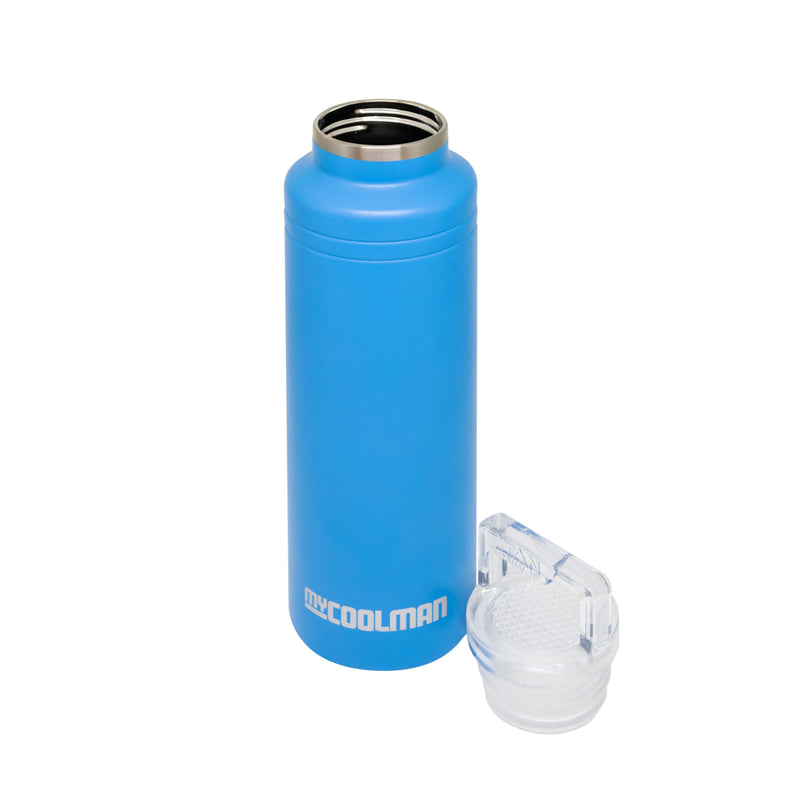 Keep your thirst quenched with the MyCoolman 591ml (20 oz.) Stainless Steel Bottle! Whether you’re hiking the trails or working a long day, you can stay hydrated with your myCOOLMAN-insulated drink bottle close by.