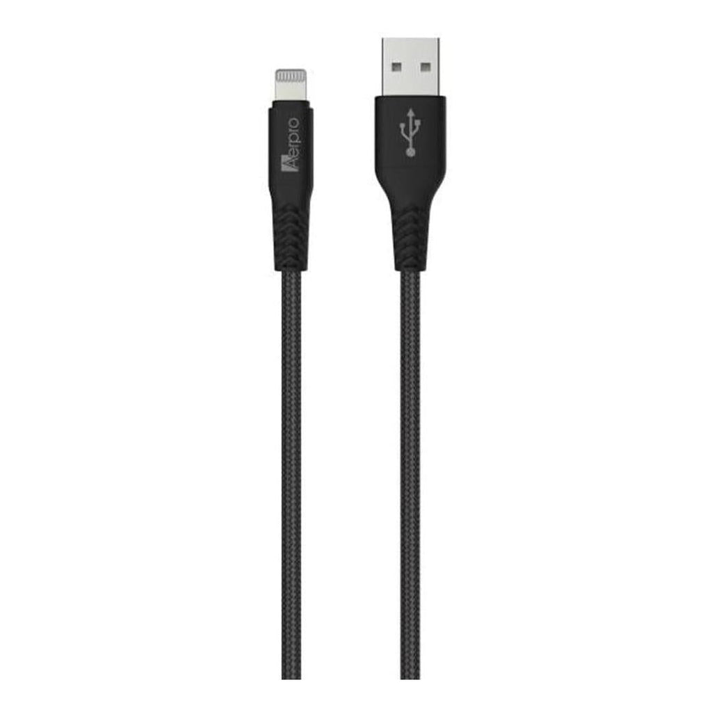 The Aerpro Apple Device USB-A Charging / Syncing Cable is the perfect cable for charging and syncing data between your Apple Lightning device and a computer. This Apple MFI Certified cable has a an Apple Lightning plug at one end to suit iPhones, iPods and iPads; and a Type-A standard USB plug at the other end for connecting to USB chargers or the USB port on a computer. This black coloured cable is 1.5 metres long and has a tough braided protective layer which is designed for everyday and heavy use.