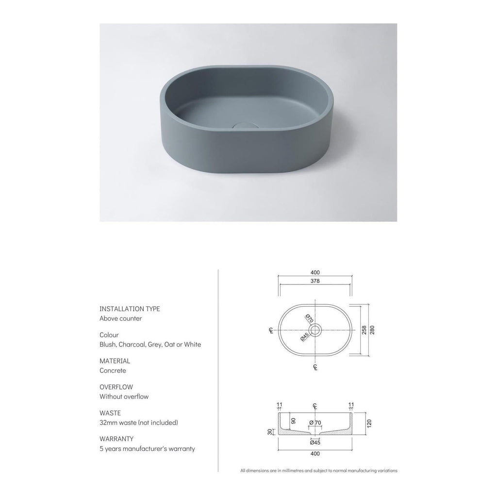 Concrete basin in mini oval design.