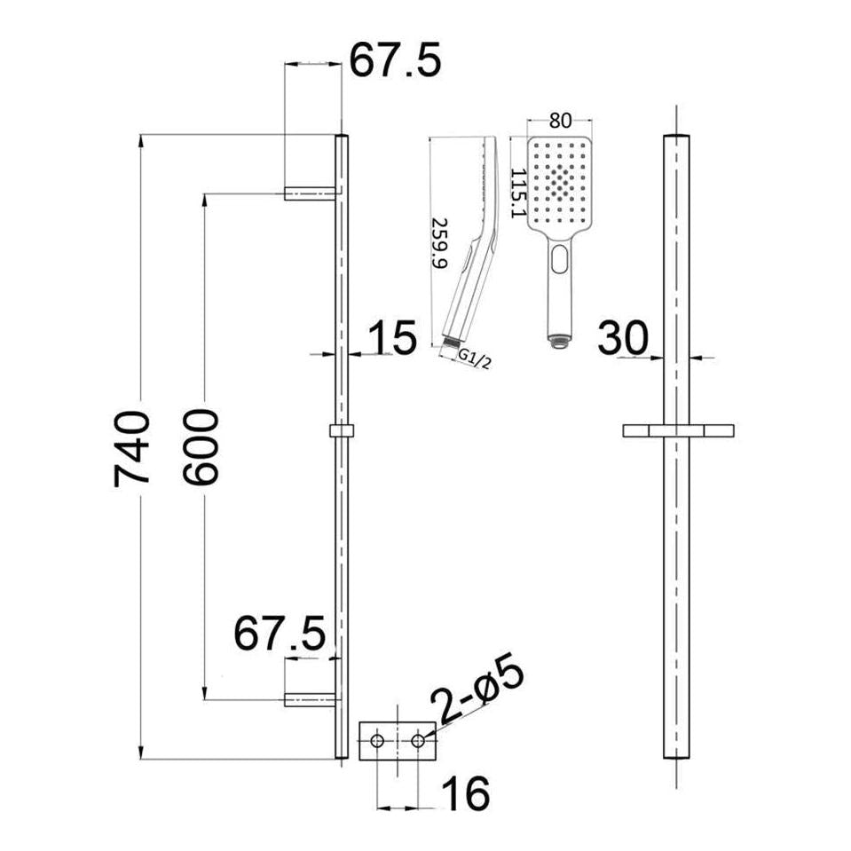 Cresta Shower Head and Square Rail French Gold