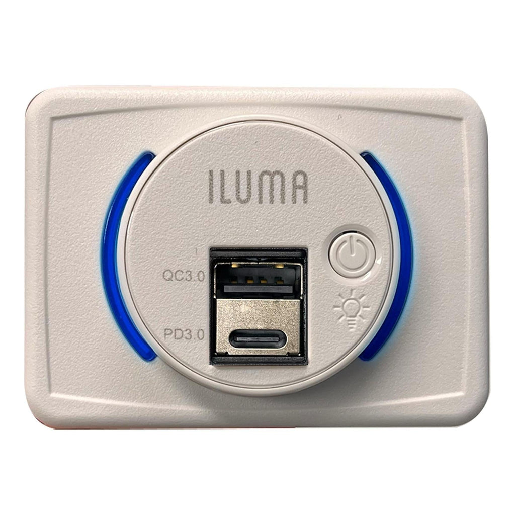 Iluma 12V/24V USB/USB-C Flush Mount Power Socket inc On/Off Light Switch 63x47mm White