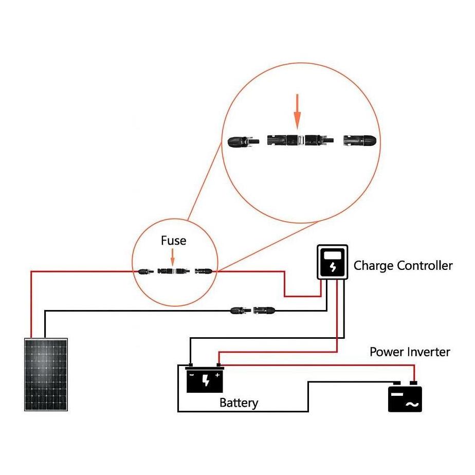 The Finch inline MC4 Fuse connector is a one-way diode, also known as a bypass diode, prevents current from flowing in the wrong direction, which can damage solar panels and other electronic equipment: