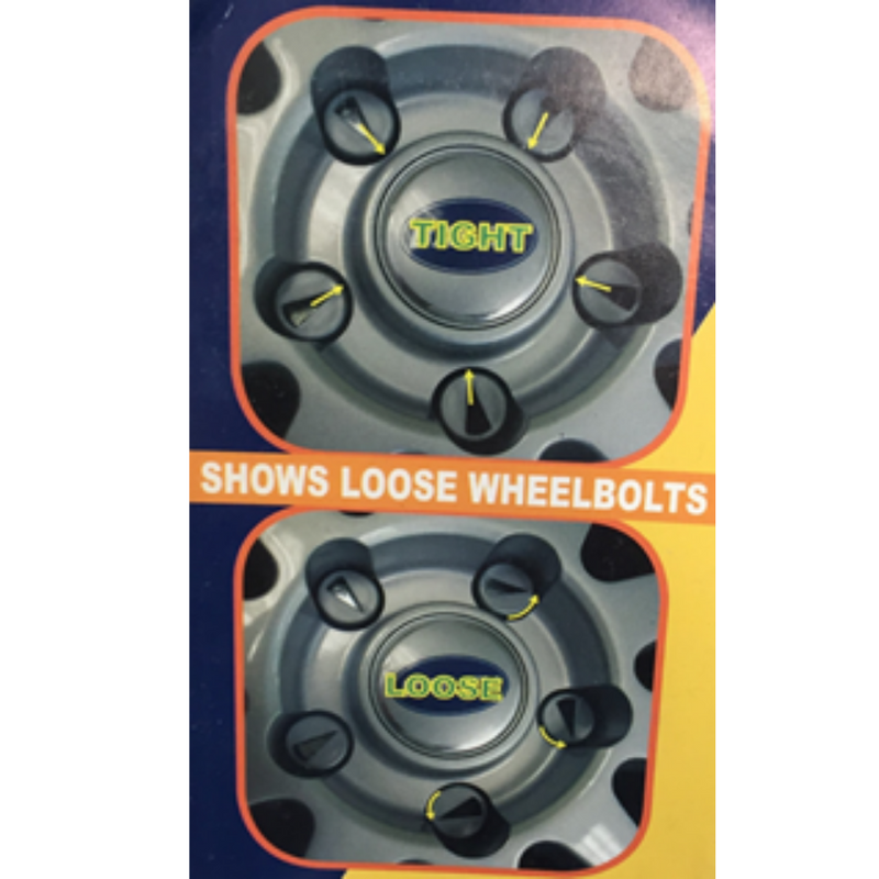 - Easily see when wheel nuts require re-tightening (see below image). Just face them all pointing inwards, any movement from this position indicates loosening.
