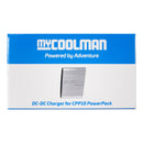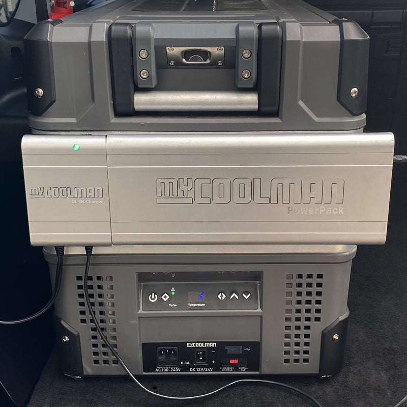 The DC-DC Charger will charge your myCOOLMAN lithium battery from flat to full power in about 5-6 hours ensuring your food and drinks can stay cold in your myCOOLMAN fridge/freezer.