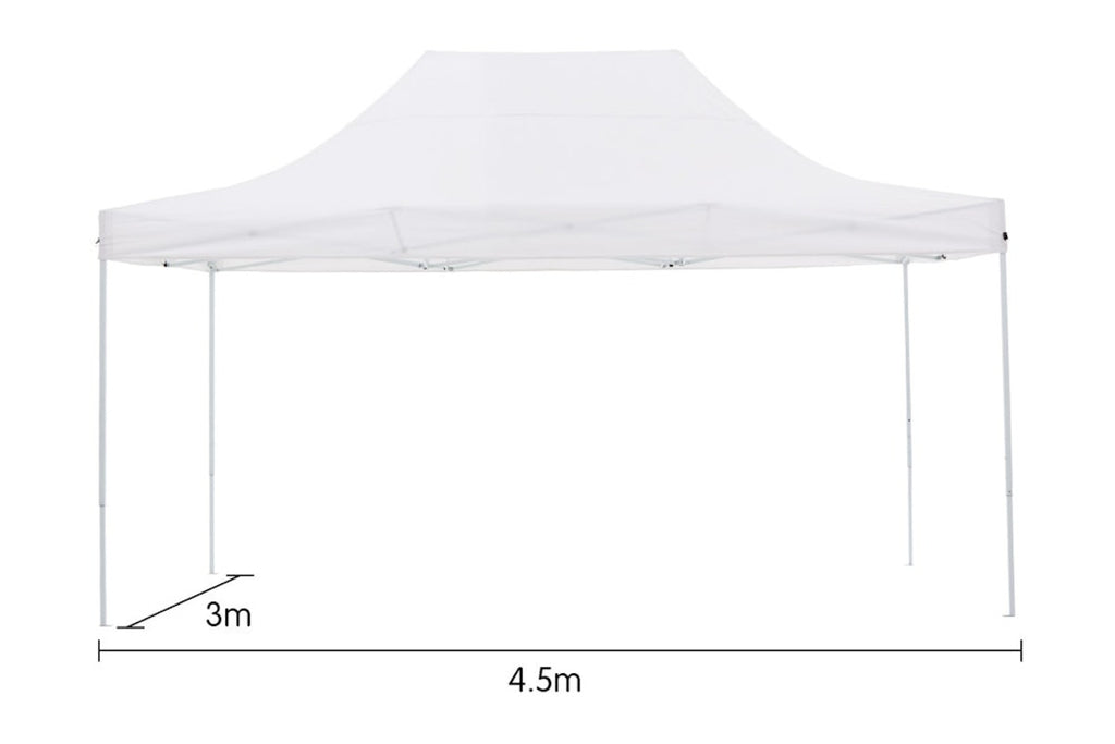 Ready when you are: Our strong triangulated frame system means this marquee comprises only 2 main parts. The frame is one complete assembly which expands to 3x4.5m and the roof is fitted over the frame as it unfolds, giving you instant cover from rain or sun! You can then set the height of the legs and fit the walls if required. When you're done you can just as easily fold the frame and roof away into the carry bag we provide, ready for transport or storage. The entire setup process will take 2 or 3 people just a few minutes!