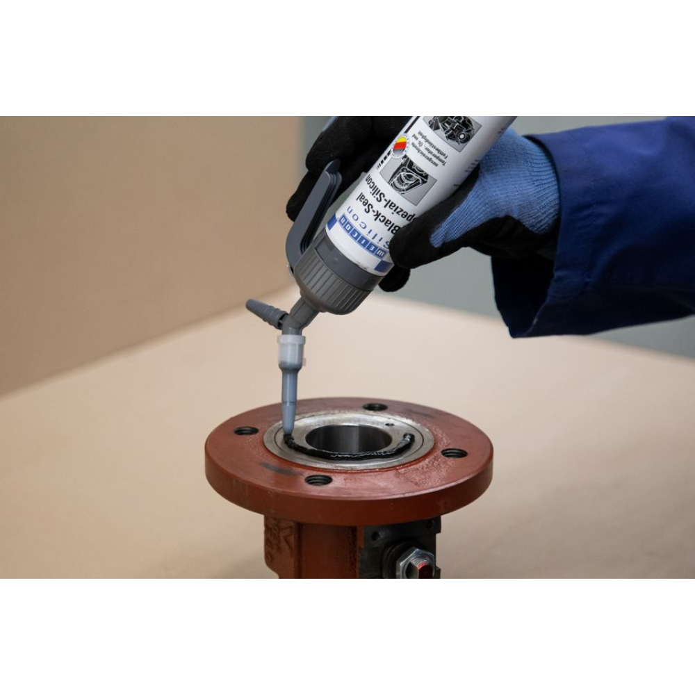 WEICON Black-Seal is black, high-temperature-resistant (+280 °C/+536 °F), free of solvents, strong, oil-resistant, grease-resistant, pressure-resistant, resistant to ageing and extremely elastic (breaking elongation of approx. 500%). It is suitable for bonding and sealing in applications where particularly high oil and grease resistance is required. The product can be used on gearbox, valve and casing covers, oil sumps, water pumps, gears and axles, flanges, tanks and containers, and in many other areas.