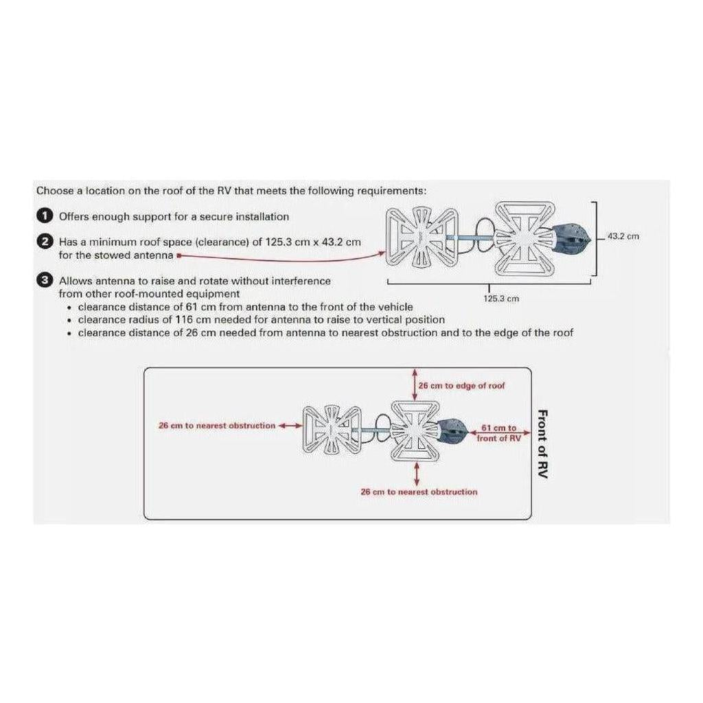 As a permanent attachment to your caravans, Rv's or Motorhome the antenna can be adjusted accordingly to receive the optimum picture quality.