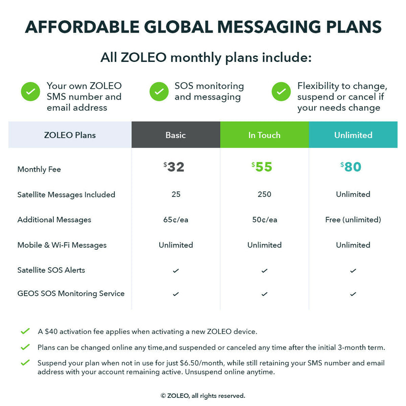 These features and others help make the ZOLEO messaging experience far more functional and familiar than anything on the market today. In addition, it still offers more traditional satellite device capabilities such as an SOS button and GPS location. It is also the clear value leader in mobile satellite communications with a low device price, free app, and rate plans that can include lots of messages -- or even unlimited messaging -- for reasonable monthly fees.